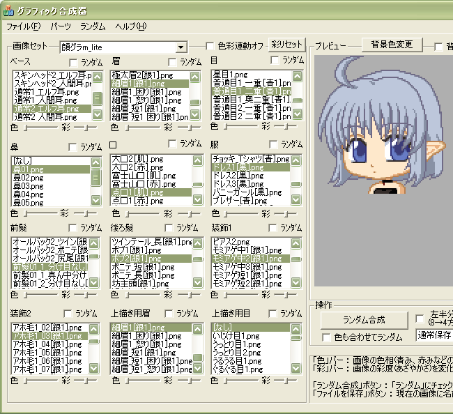 製作中(でほったらかし)の顔グラ合成器で