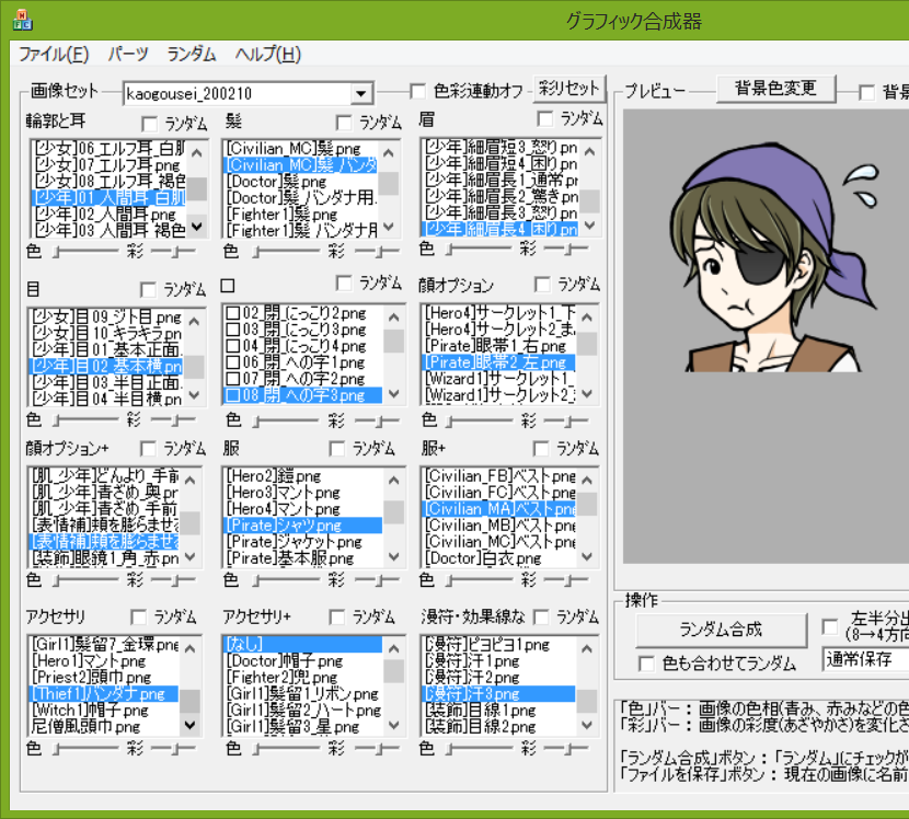 主にウディタ向けの顔グラ合成素材配布サイト。